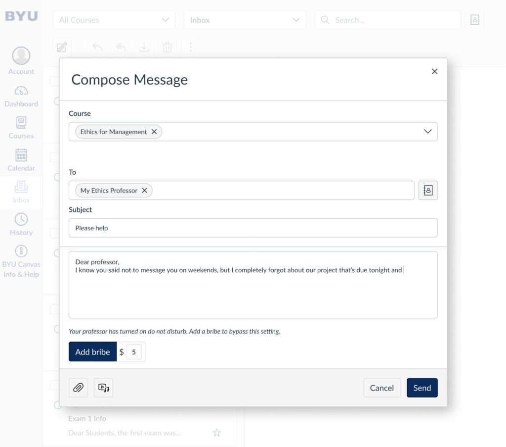 Canvas suggests sending a bribe to your professor if they have notifications turned off